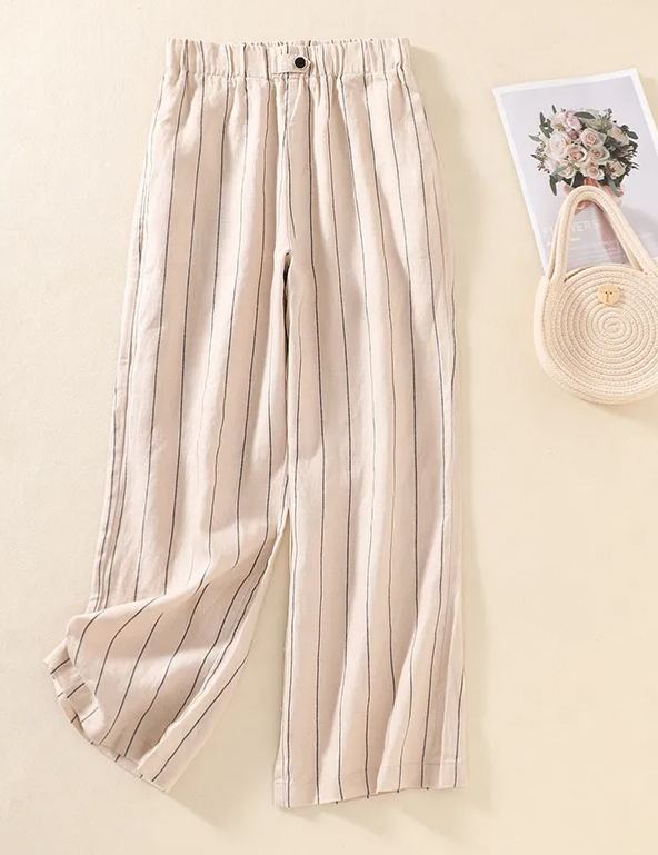 Womens Stripes Summer Lightweight Boho Wide Cotton Linen Pants
