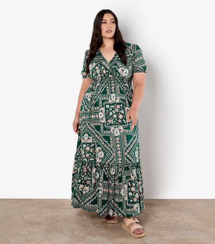 Apricot Curves Green Scarf Print Maxi Dress