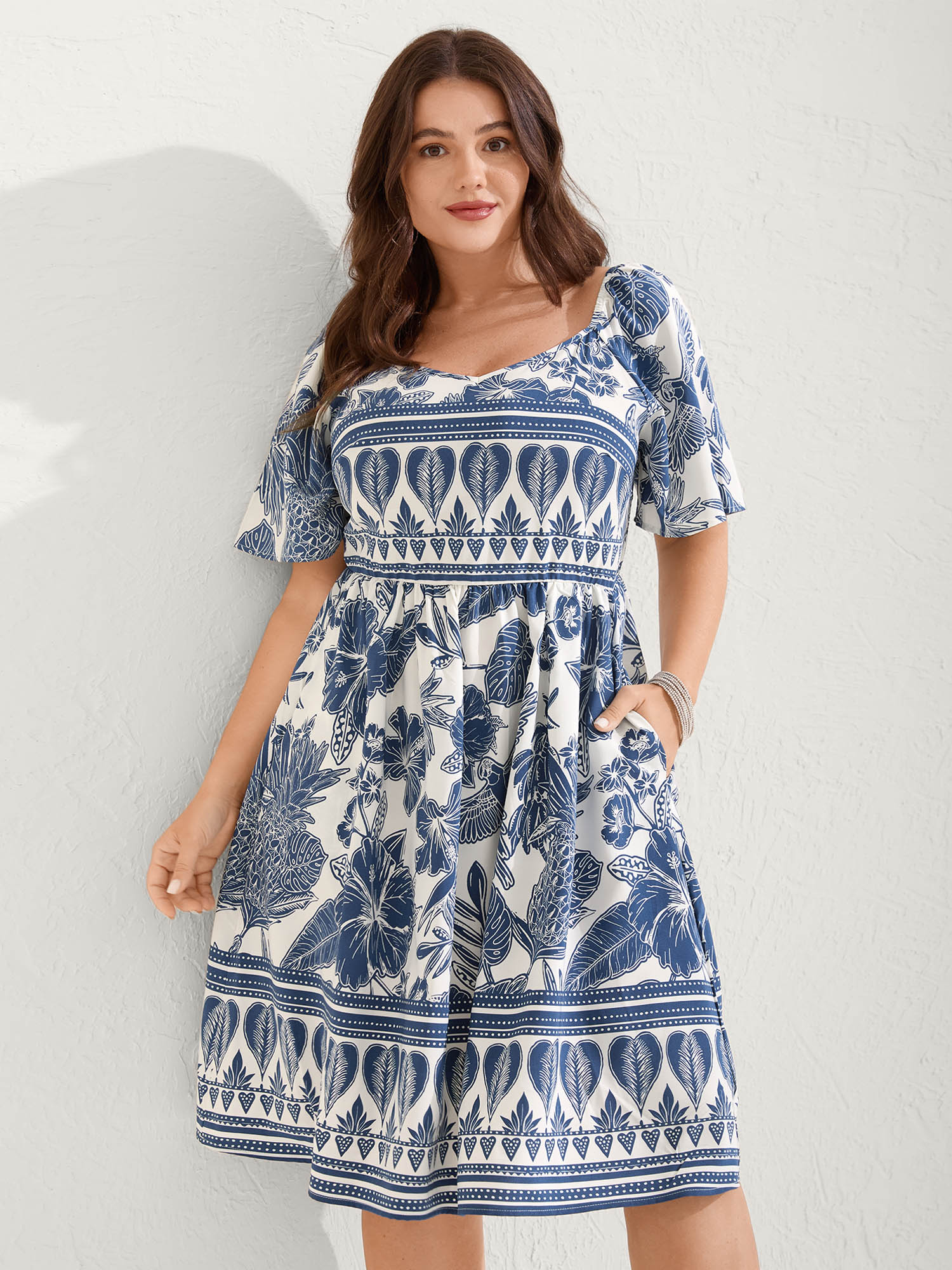 Boho Print Fit Flare Pockets Midi Dress