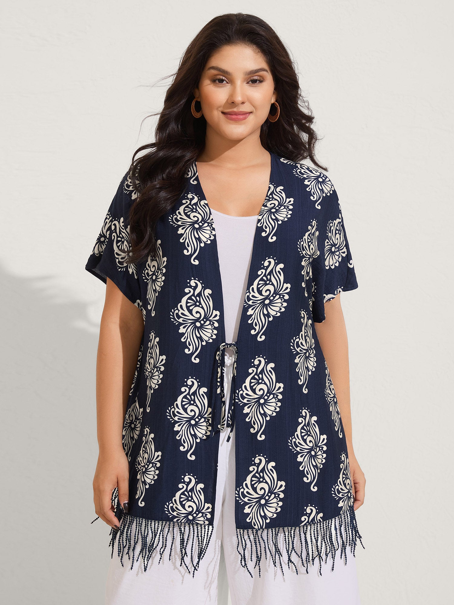 Boho Print Tassels Hem Kimono