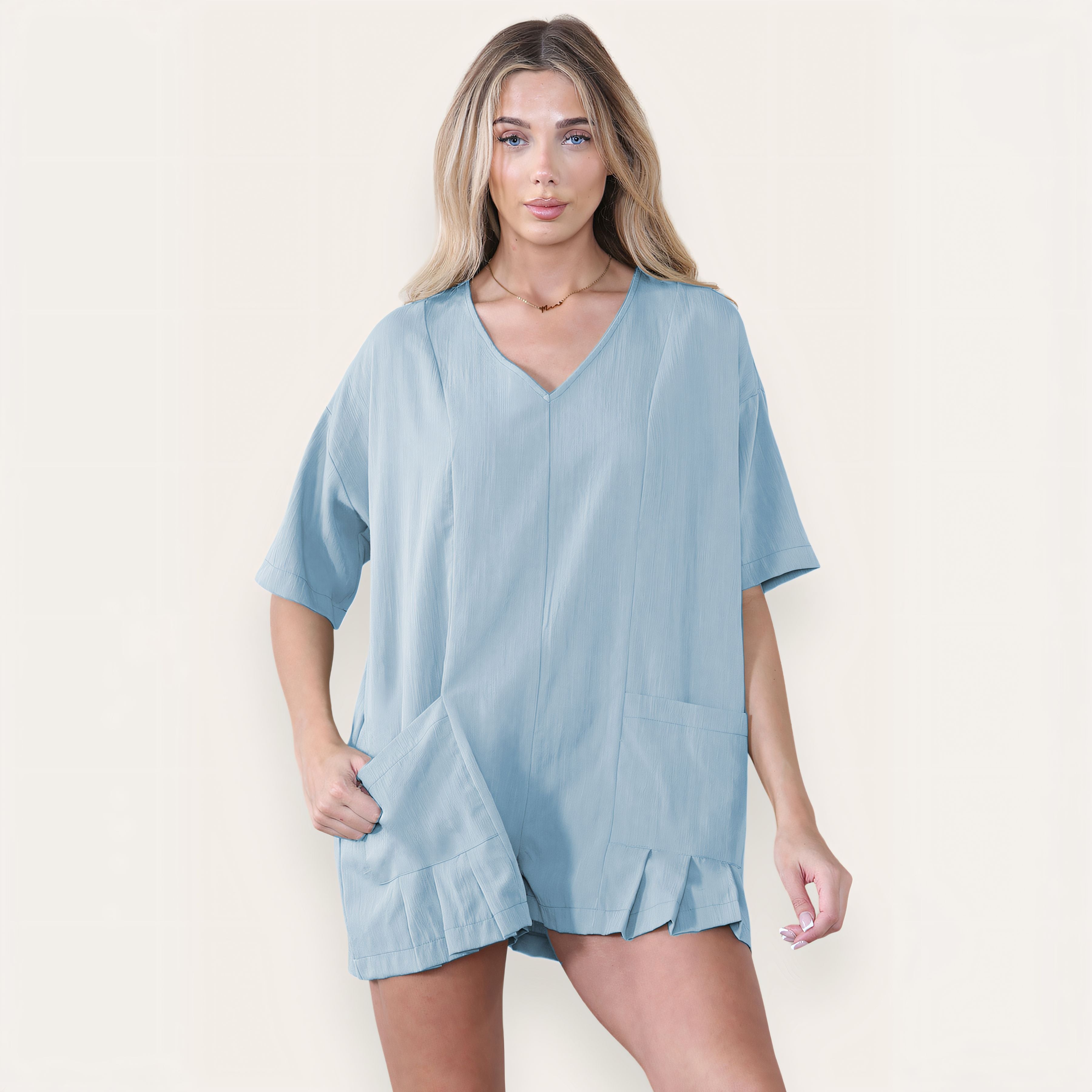 Casual Plain V Neck Half Sleeve Pocket Loose Playsuit