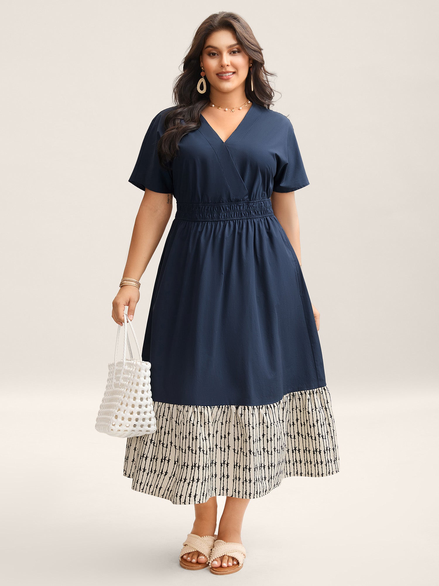 Cotton Color Block Cinched-Waist Spliced Maxi Dress