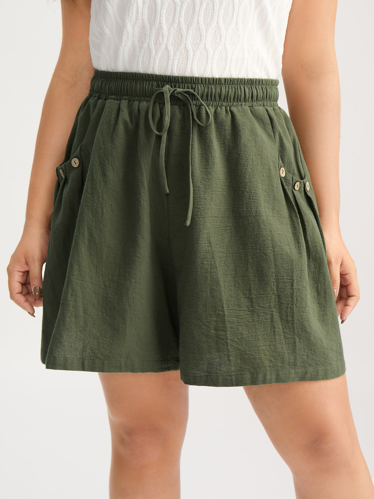 Cotton Drawstring Waist Straight-Leg Shorts