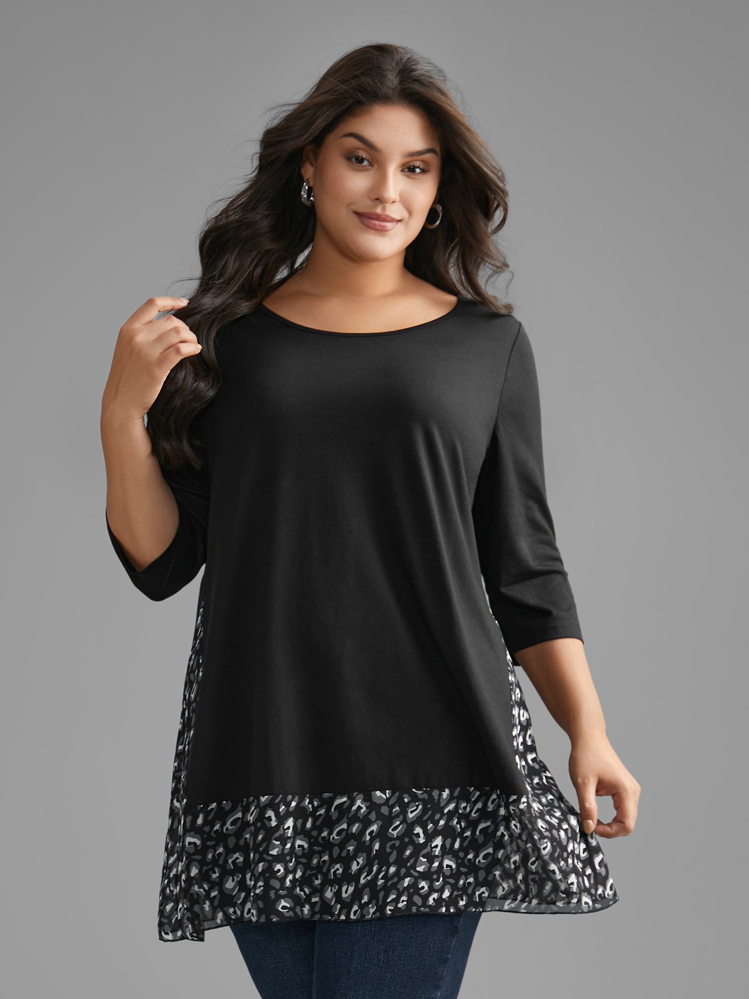Crew Neck Leopard Print Patchwork T-shirt