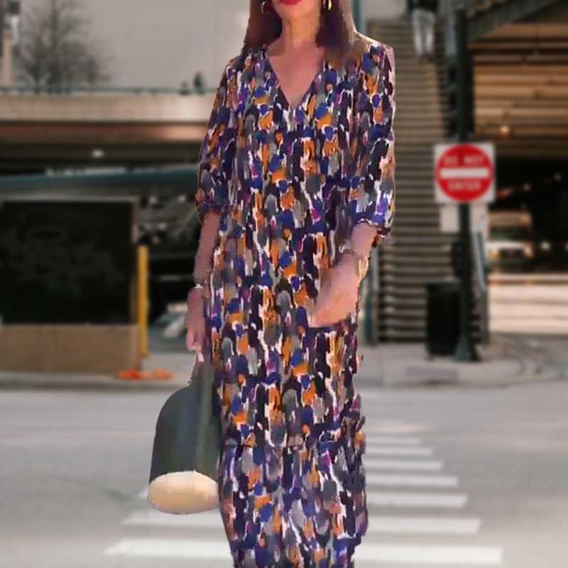 STILREN V-HALSDESIGN - Den eleganta V-ringningen förhöjer klänningens avslappnade stil samtidigt som den ger en touch av sofistikerad charm till din outfit.