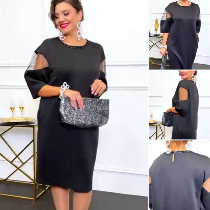 Package Included:1*Elegant Round Neck Semi-Sheer Sleeve Dress