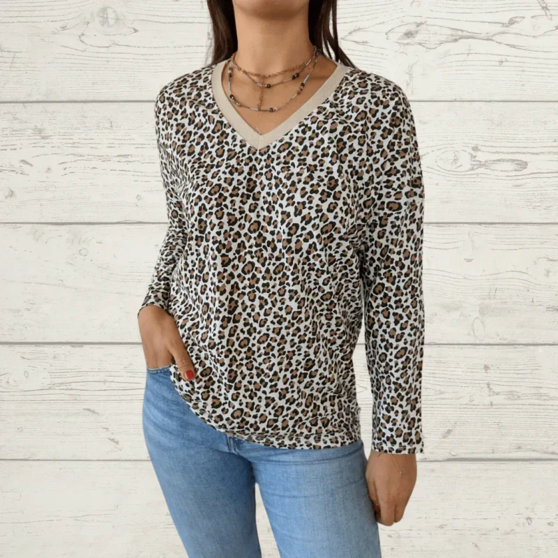 TRENDY LEOPARD PRINT DESIGN: The stylish V-neck design features a bold and eye-catching leopard print, perfect for adding a wild touch to your wardrobe. A versatile piece to enhance your casual outfits.