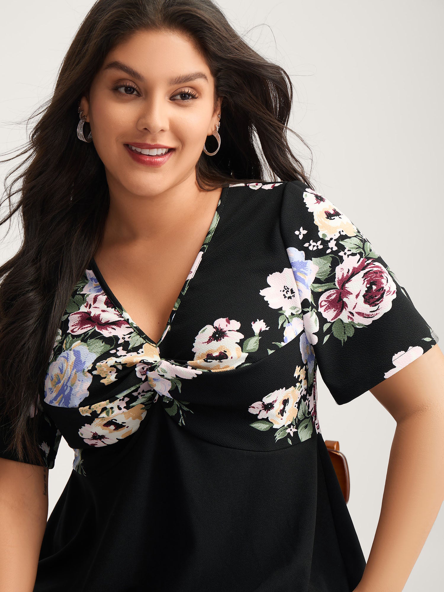 Floral Knotted Bodice Flowy Knit Top