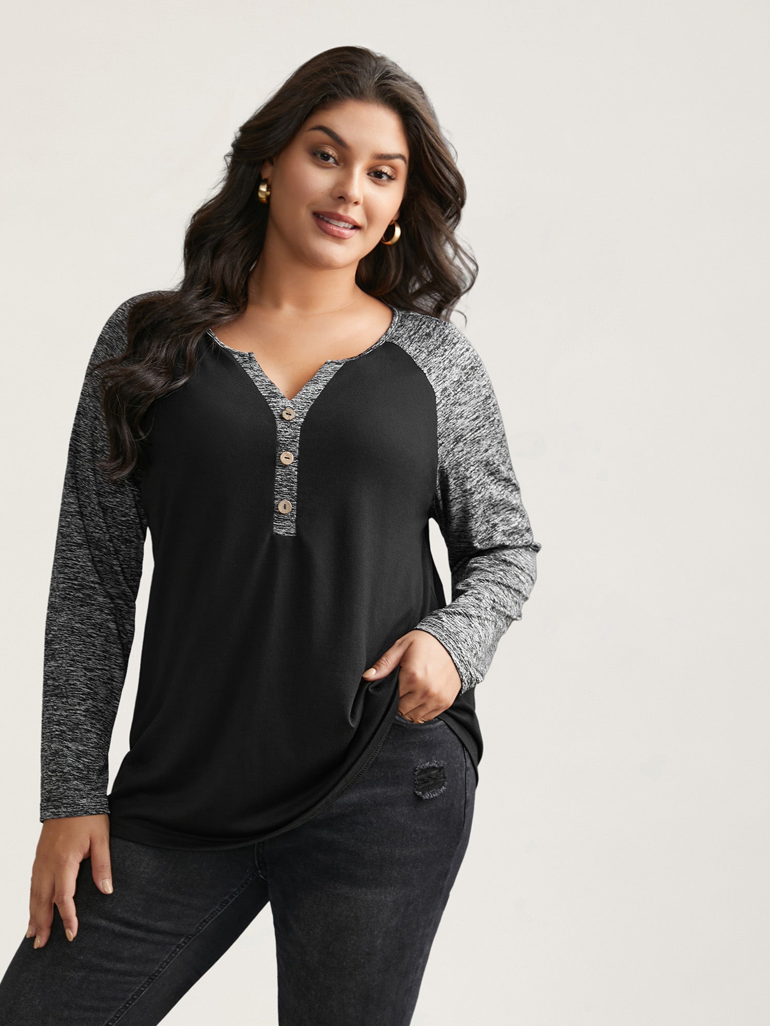 Heather Patchwork Button Detail Stretchy T-Shirt