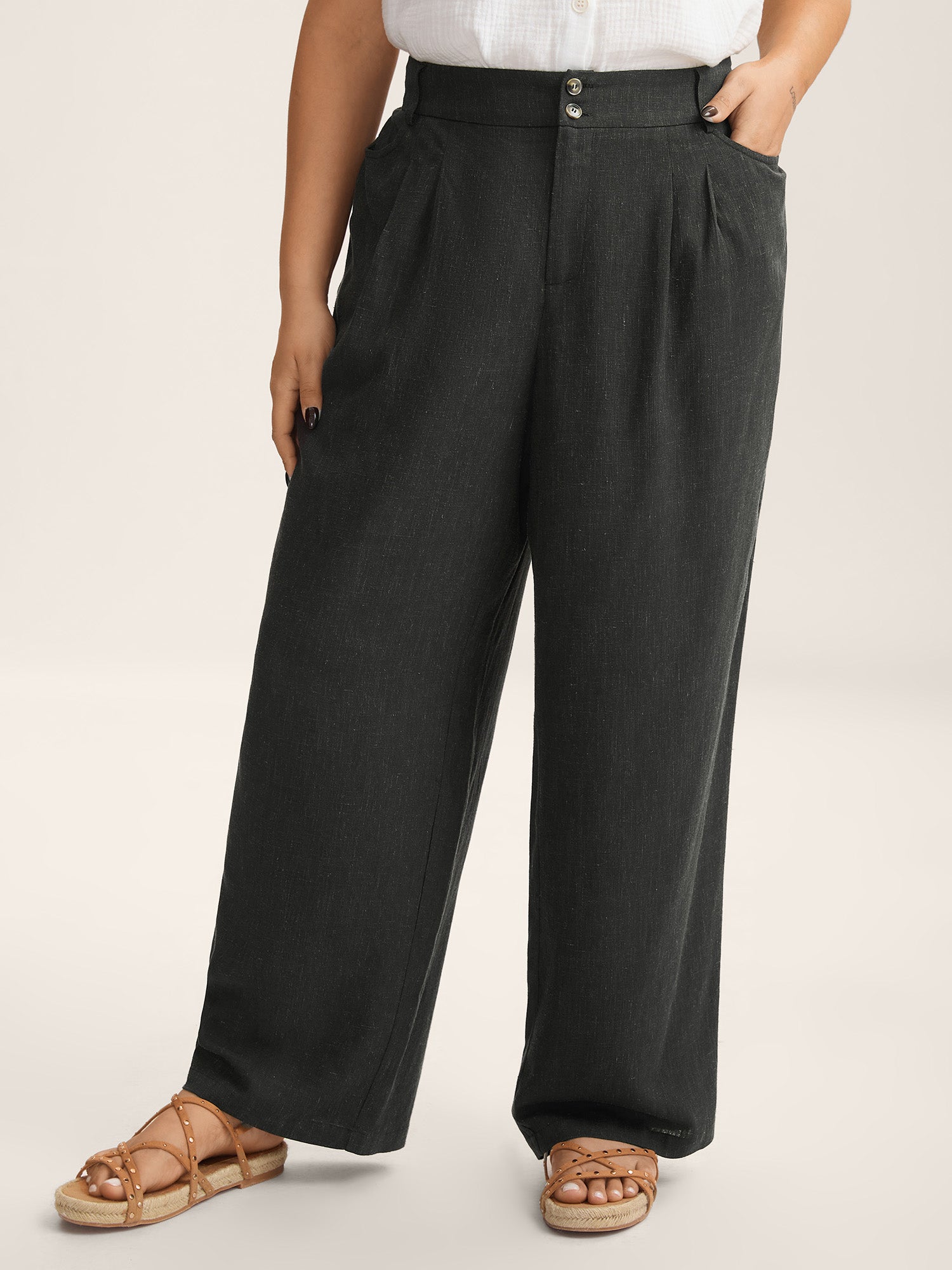 Rayon-Linen Pleated Straight-Leg Pants
