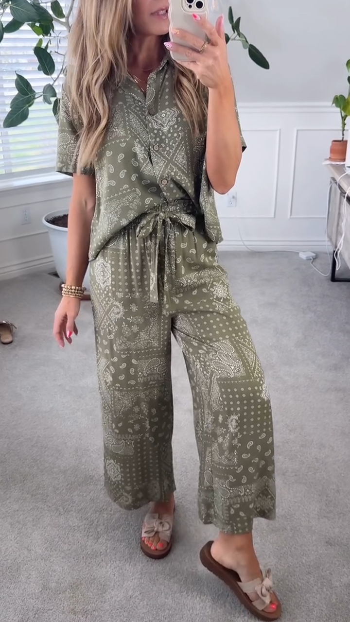 Ladies' Collar Print Loose Casual Suit