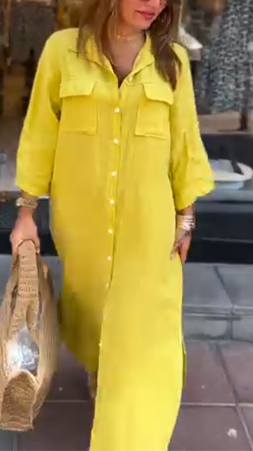 Ladies' Collar Solid Color Slit Loose Casual Dress
