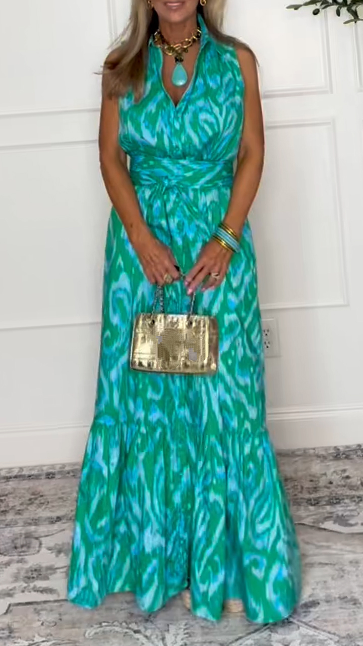 Ladies' Collar, Waist, Printed and Spliced Temperament Dress