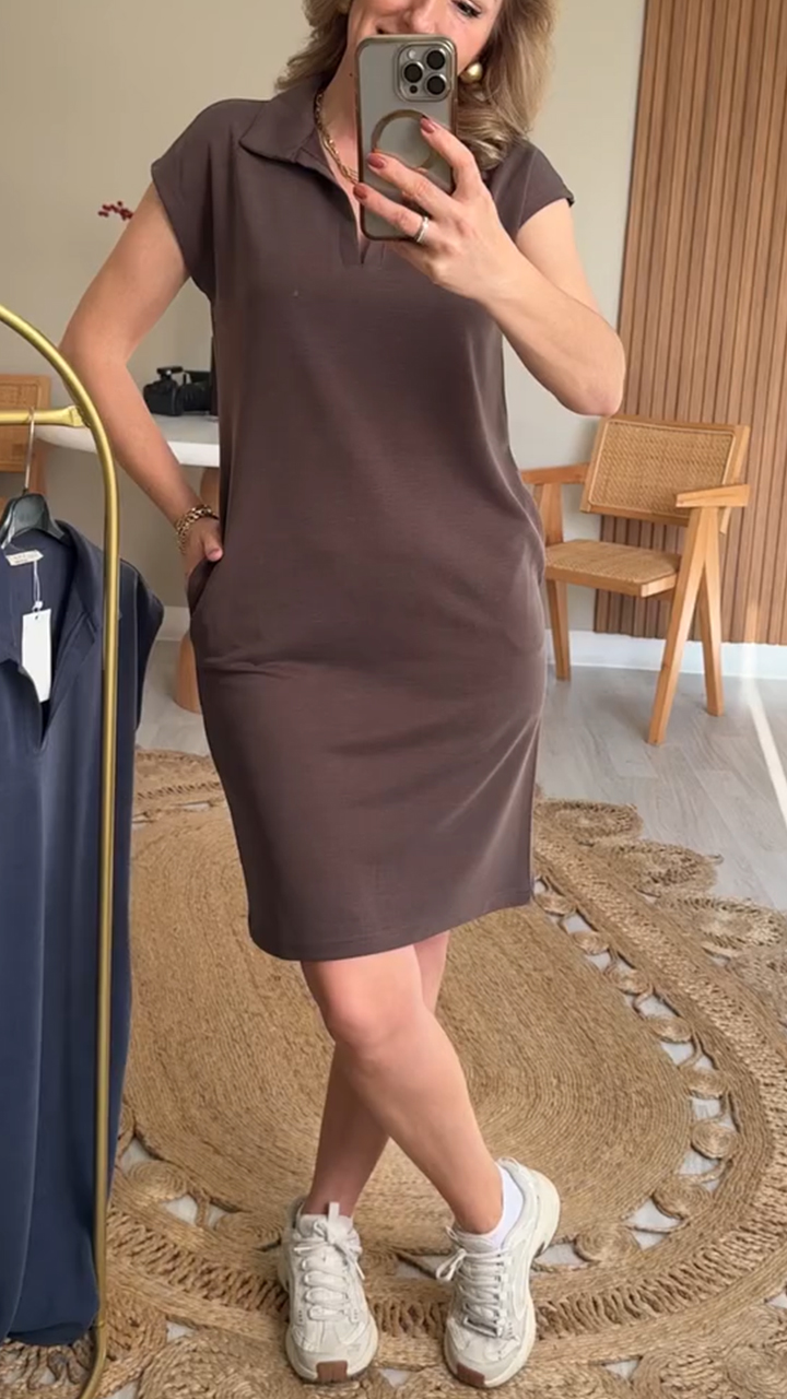 Ladies' Lapel Solid Color Casual Dress