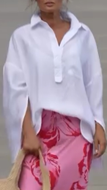 Ladies' Loose Collar Shirt with Printed Long Skirt Casual Set