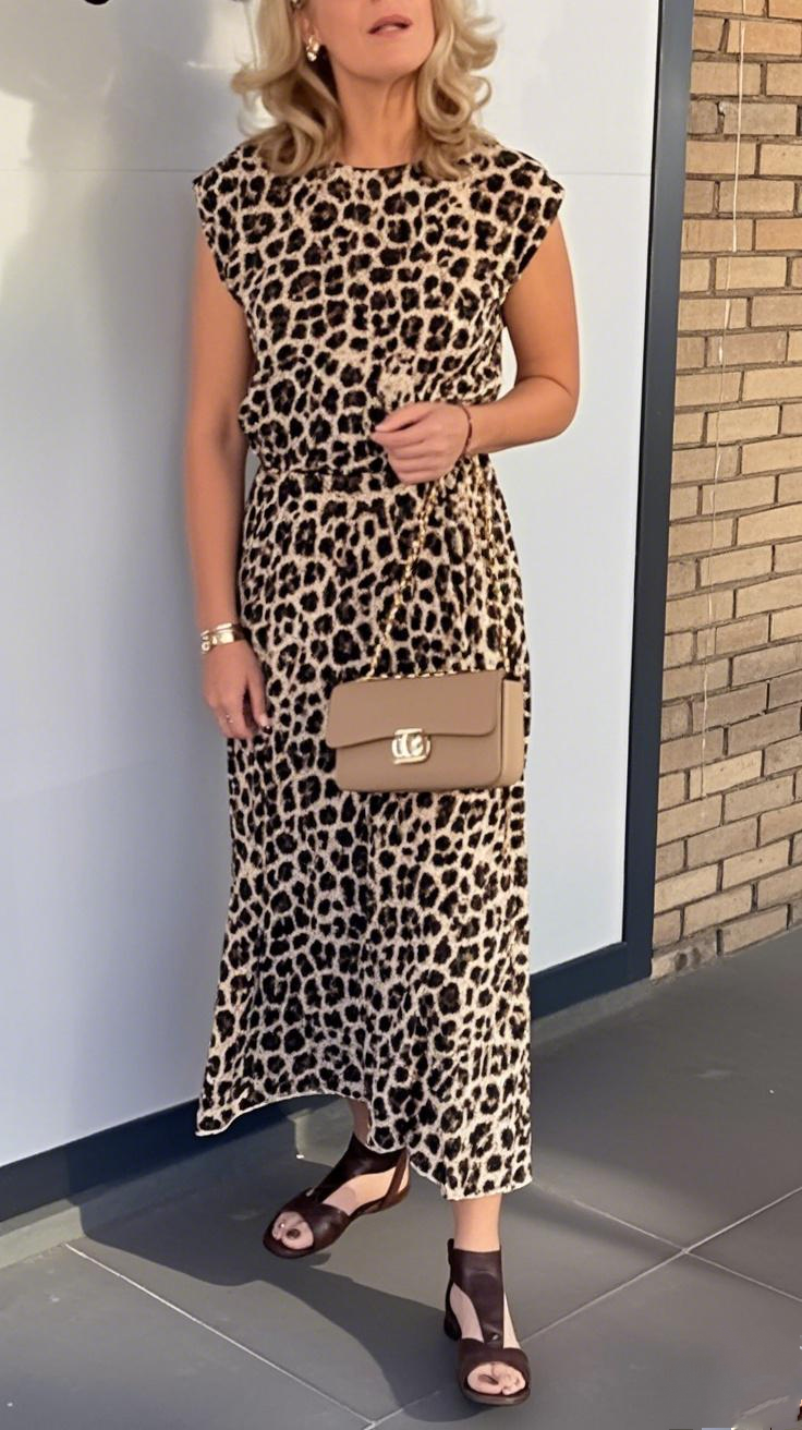 Ladies' Round Neck Leopard Print Casual Suit