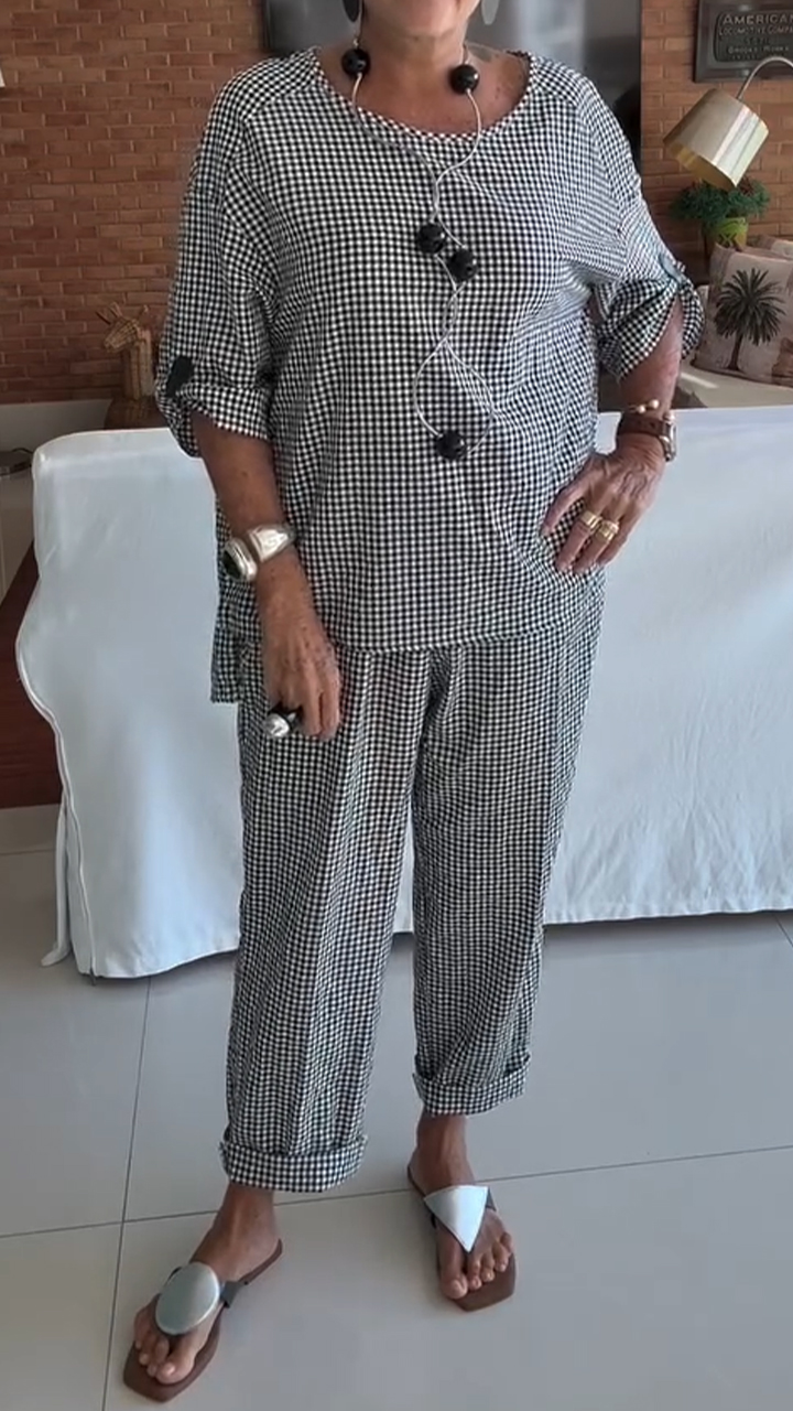 Ladies' Round Neck Plaid Loose Casual Suit