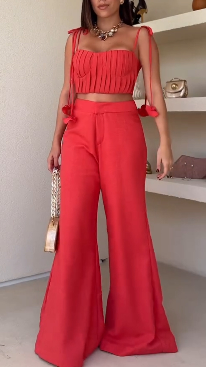 Ladies' Spaghetti Strap Strapless Top+pants Casual Temperament Set