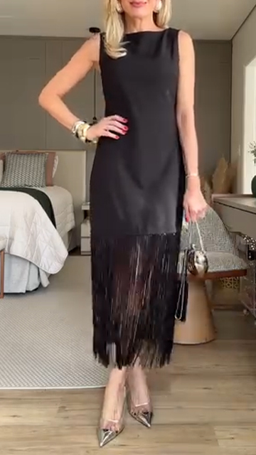 Ladies' Square Collar Patchwork Tassel Temperament Dress