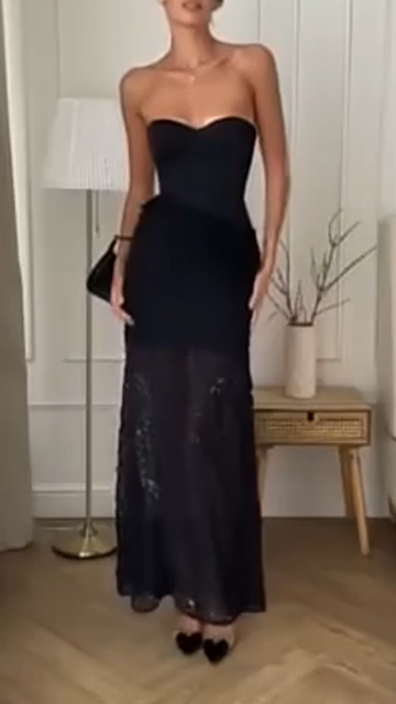 Ladies' Strapless Patchwork Elegant Evening Dress