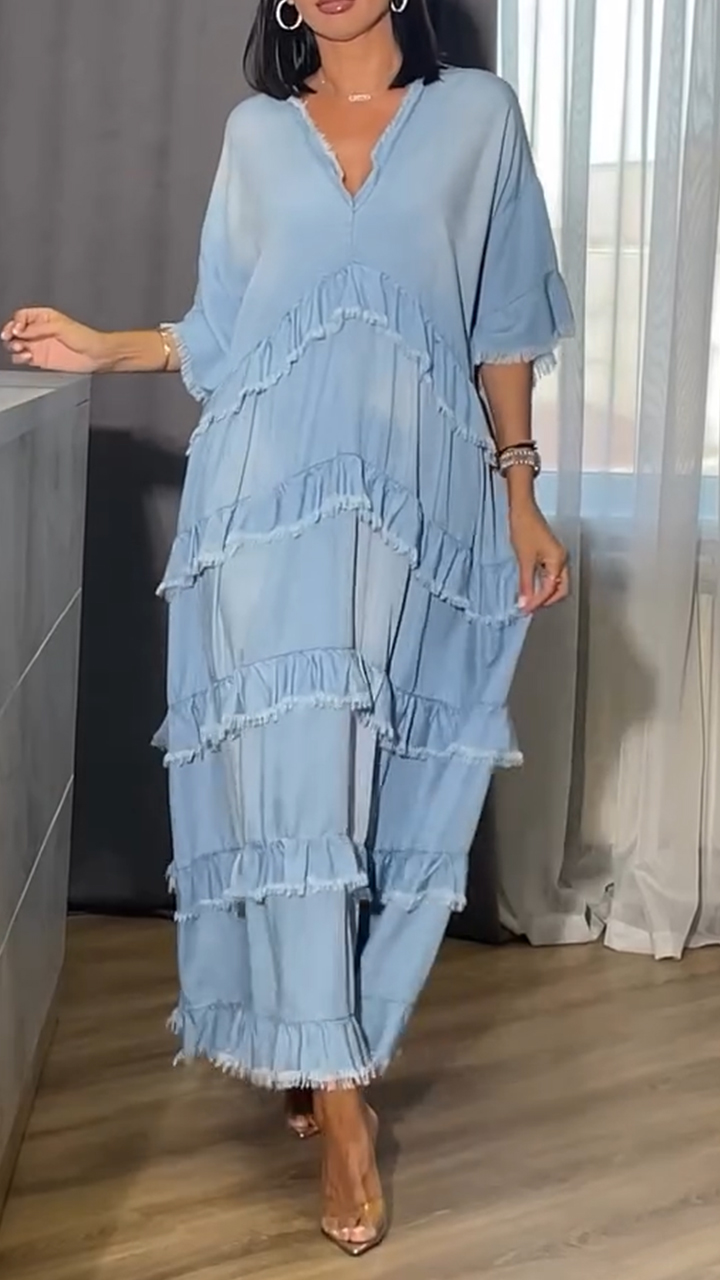 Ladies' V-neck Wash Water Irregular Splicing Casual Dress