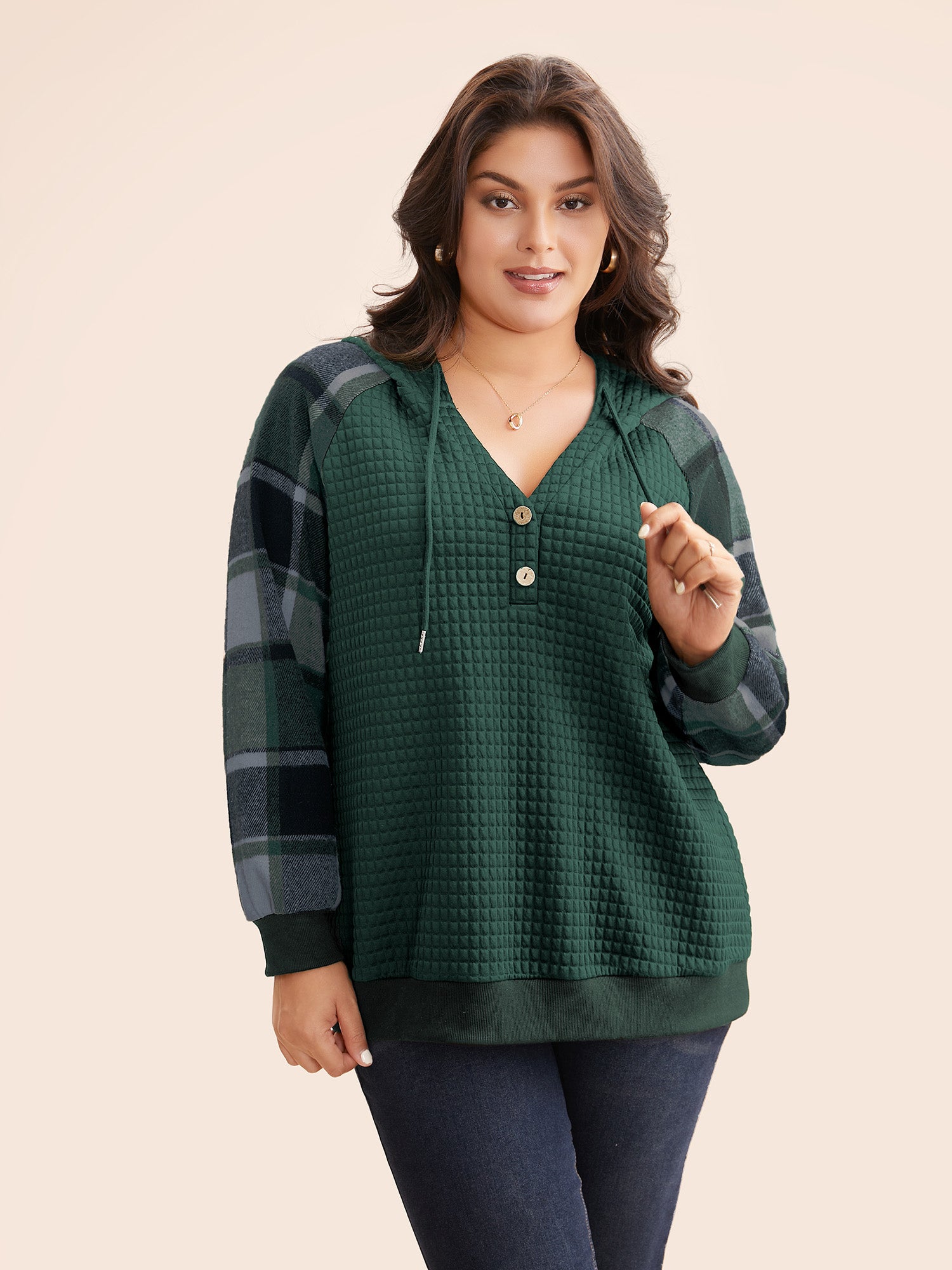 Plaid Patchwork Hooded Raglan Sleeve Sweatshirt