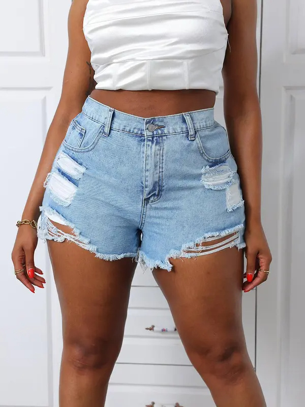 [Flattering Plus-Size Fit)]:Designed with a high waist and slight stretch, these denim shorts offer a fitted silhouette that gracefully accommodates plus-size figures