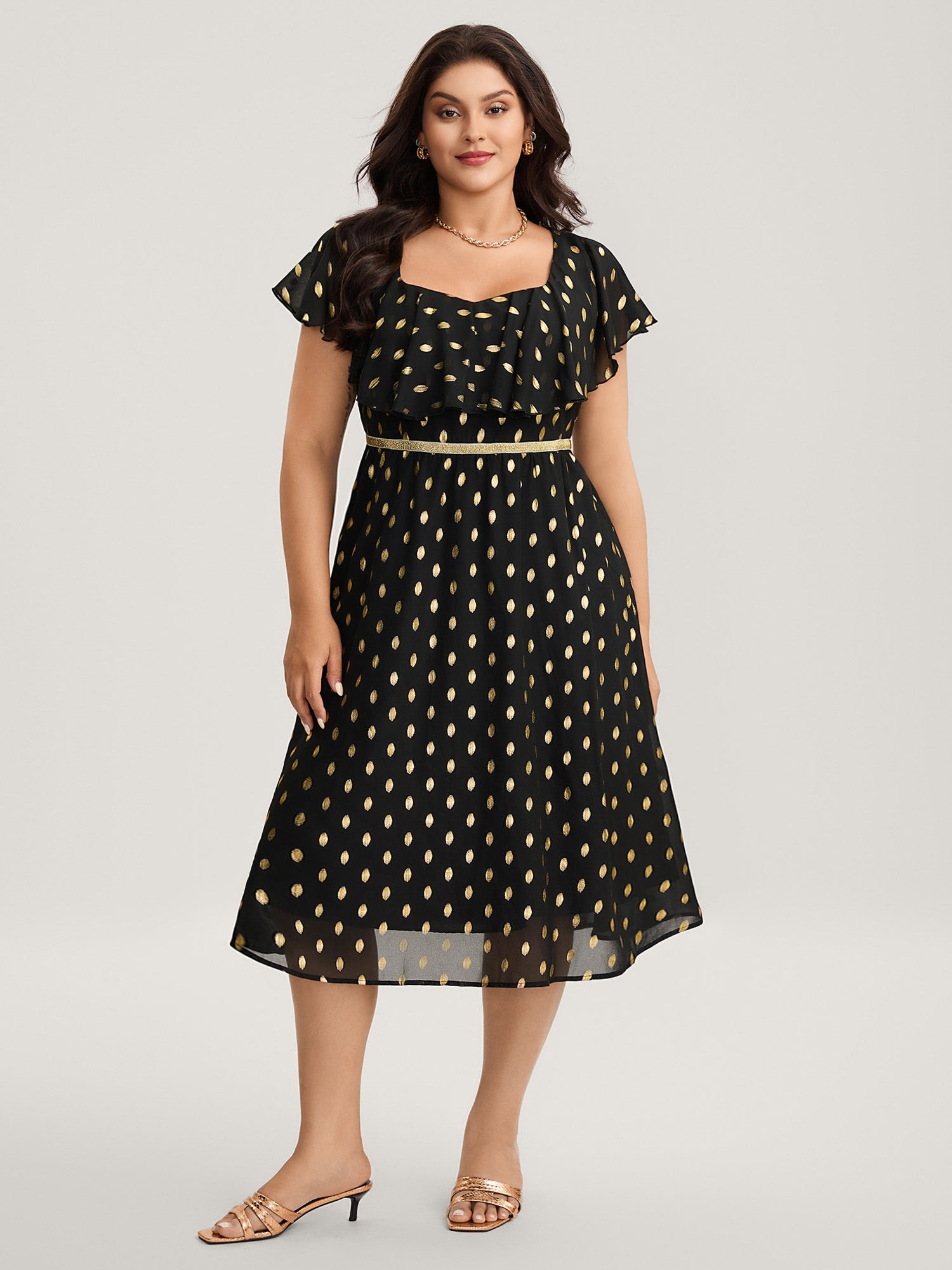 Shimmery Polka Dot Stretchy Waist Midi Dress