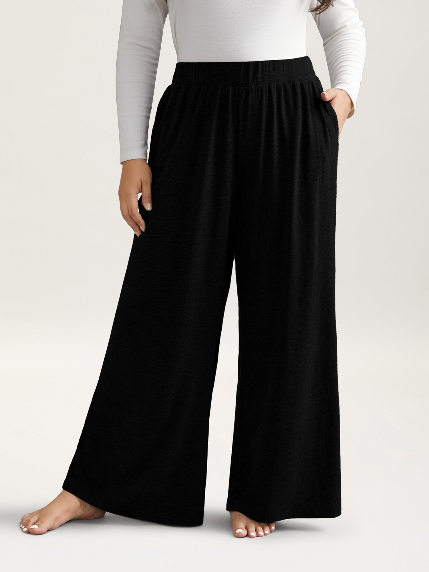 Solid Elastic Waist Wide Leg Lounge Bottoms