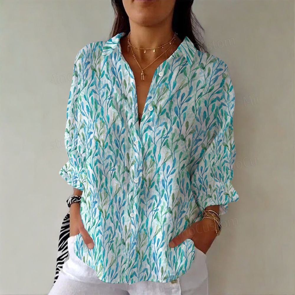 Tree branches pattern V-Neck-Three-quarter sleeve shirt