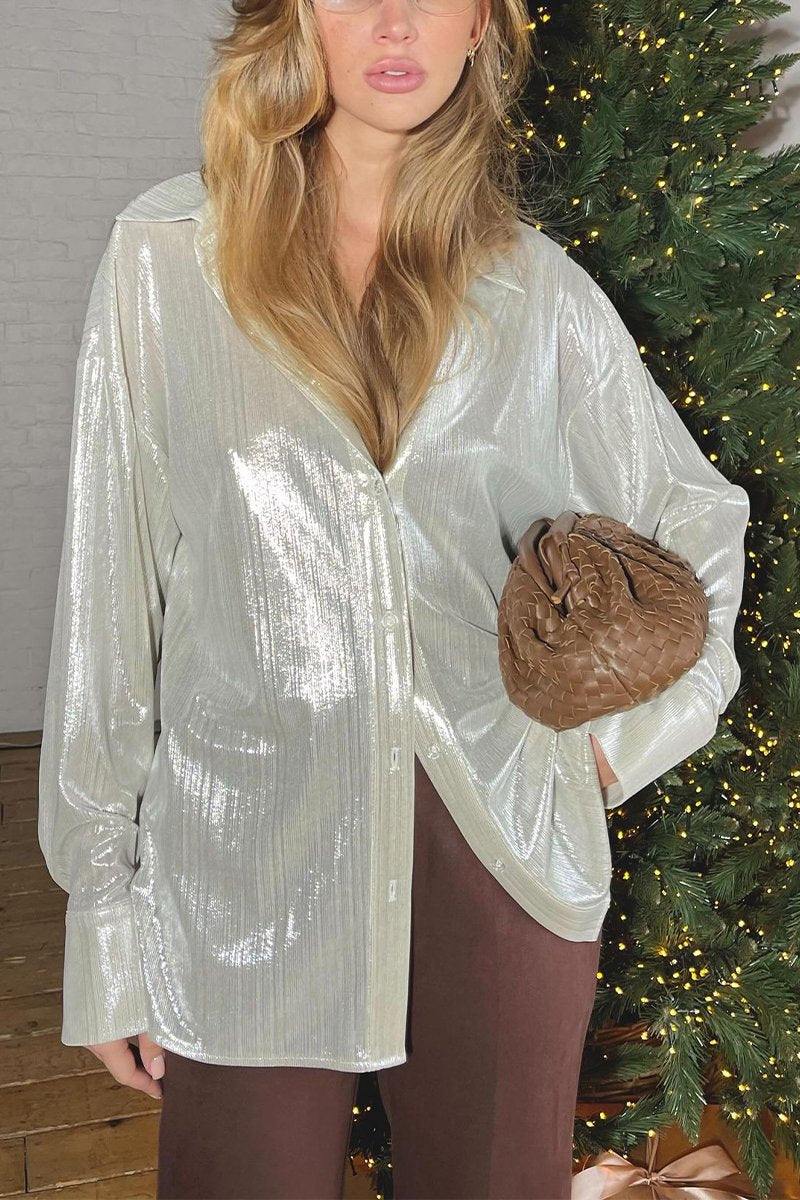 Women's Casual Lapel Single-breasted Pearlescent Shirt