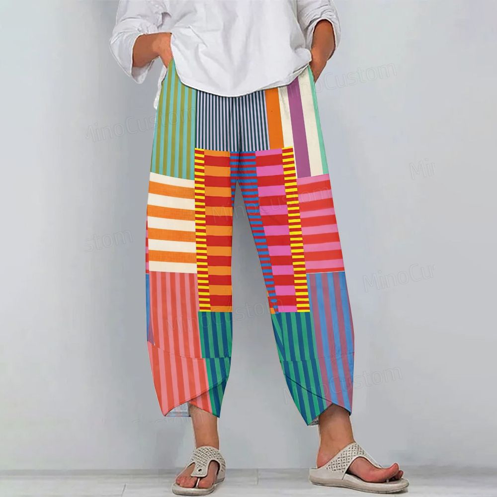 Women's Casual Striped Stitching Printed Pants