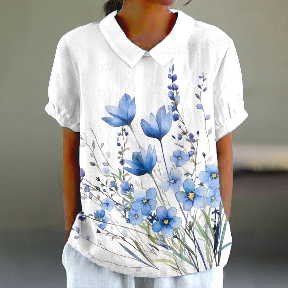 Blue floral watercolor short sleeve shirt
