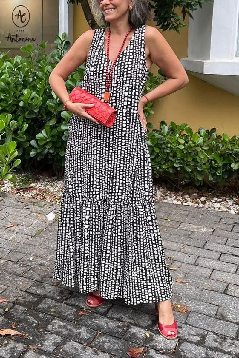 Women's Casual V-neck Irregular Polka Dot Long Dress