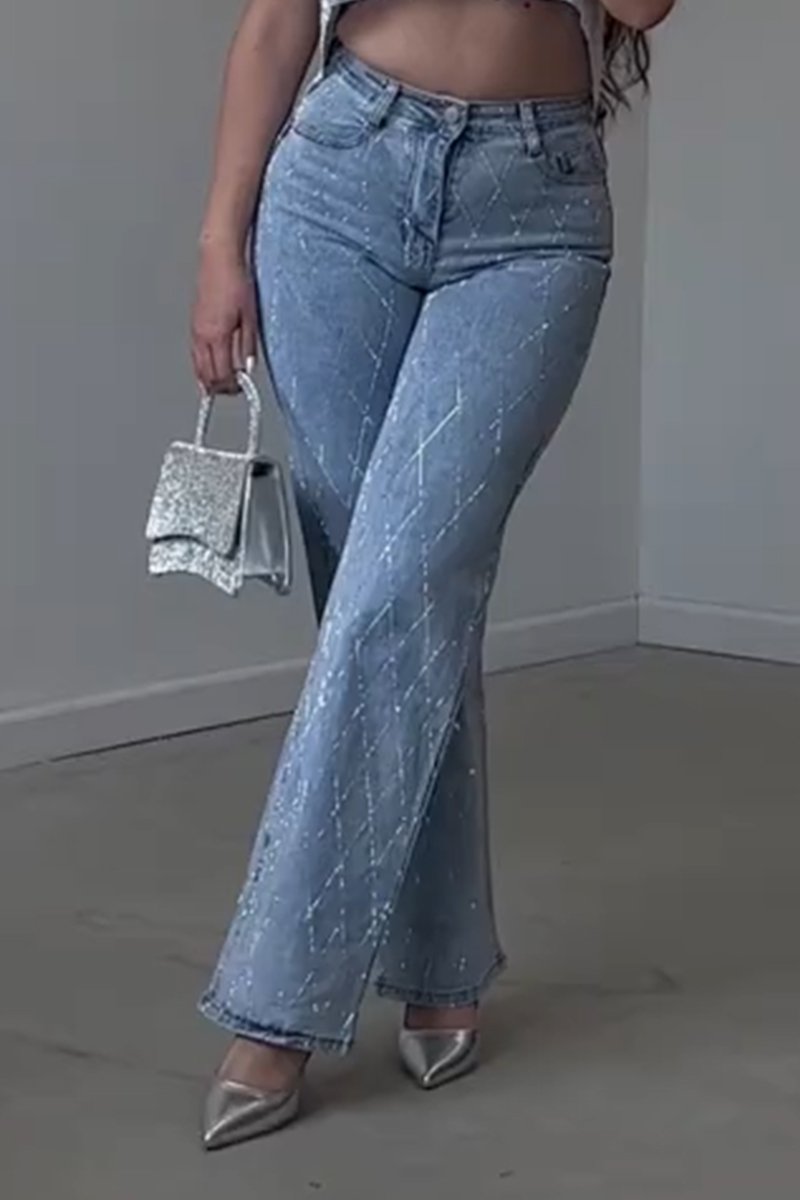 Women's Cool Diamond Rhinestone High Waist Slim Fit Jeans