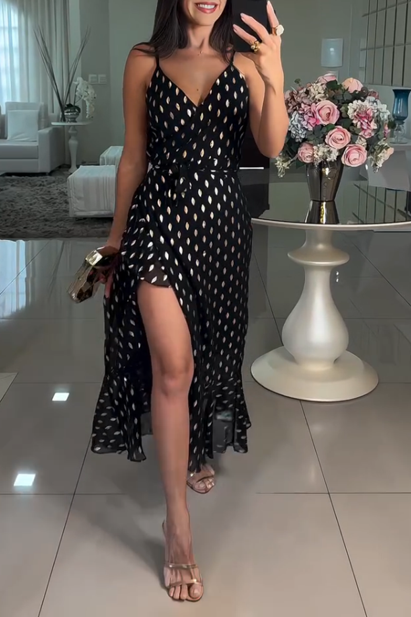 Women's Elegant Cross Strap Polka Dot Suspender Dress