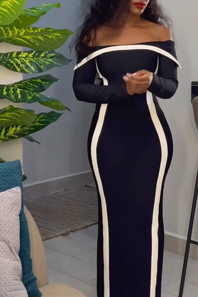 Women's Elegant Off-shoulder Contrasting Color Slimming Dress