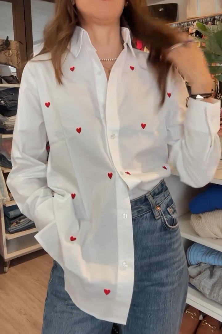 Women's Fashion Casual Solid Color Love Heart Shirt