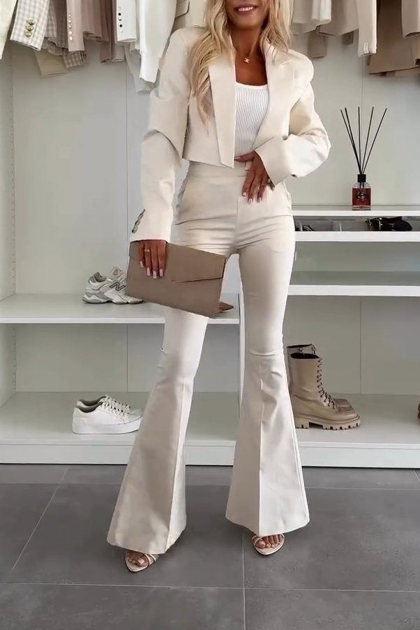 Women's Fashion Solid Color Lapel Short Long Sleeve Two-piece Suit