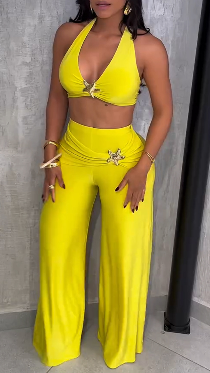 Women's Halter Neck Bra + Trousers Star Decoration Leisure Suit