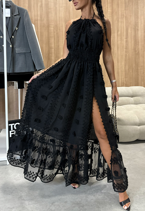 Women's Halter Neck Slit 3D Flower Holiday Dress