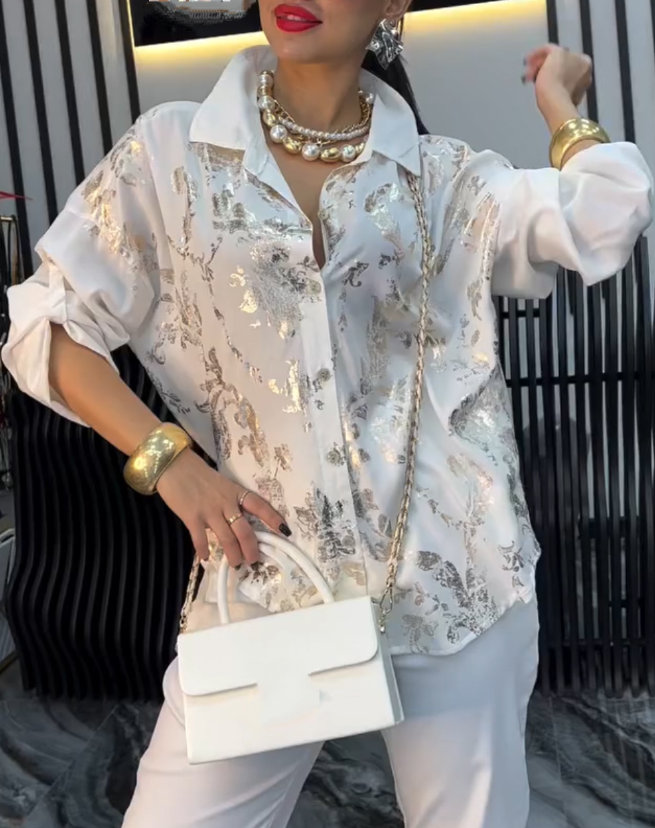 Women's Lapel Gold-stamped Casual Shirt