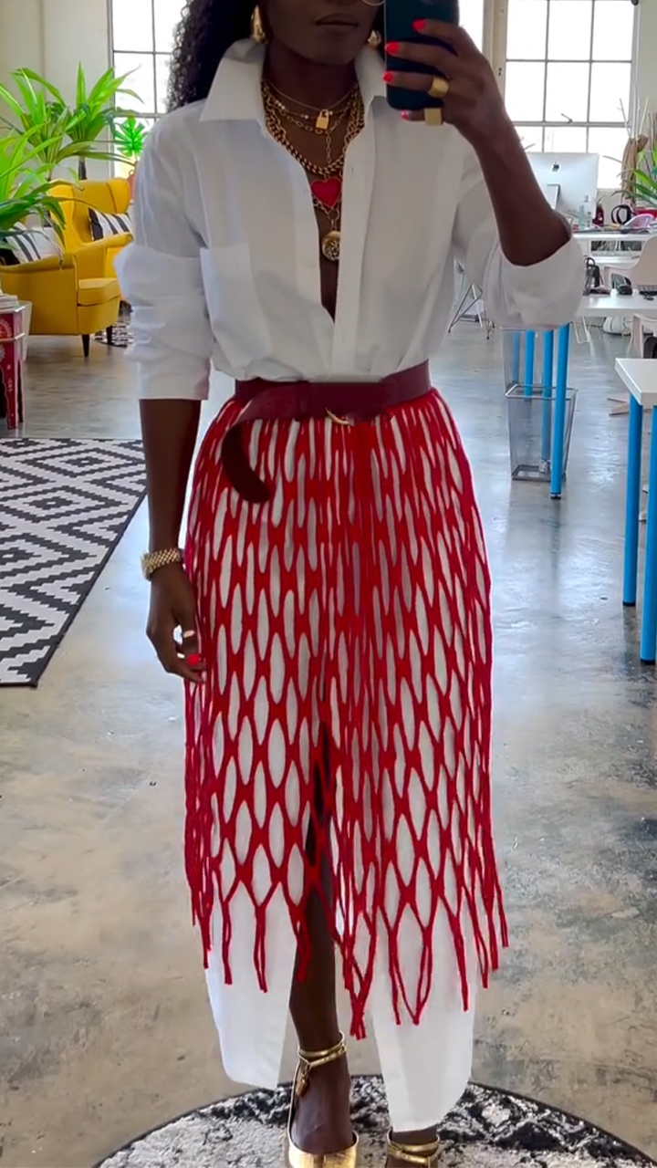 Women's Lapel Long Shirt Dress + Mesh Skirt Outerwear Set