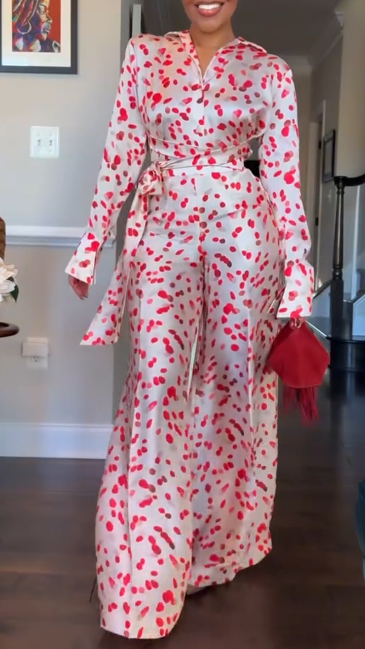 Women's Lapel Printed Casual Suit