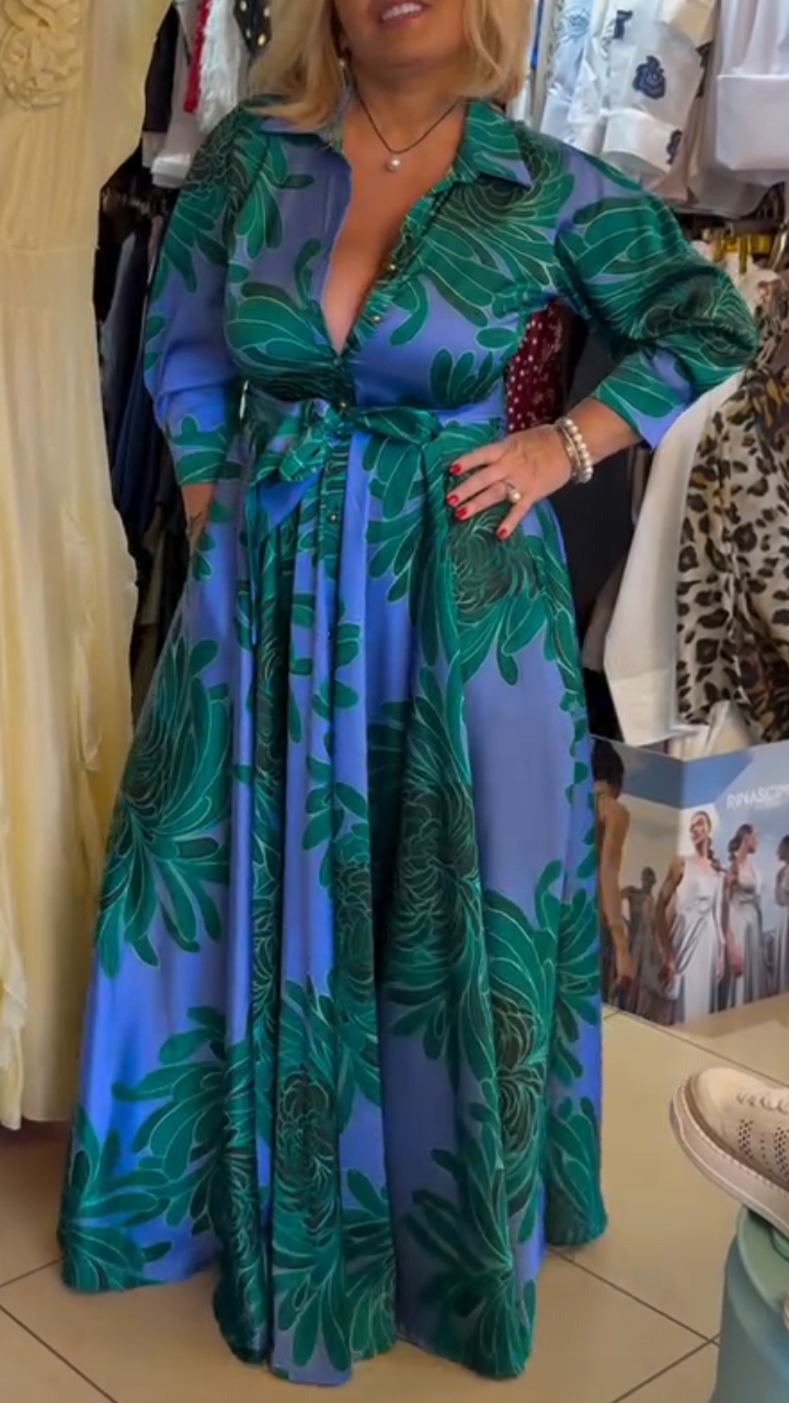 Women's Lapel Printed Tie Casual Dress