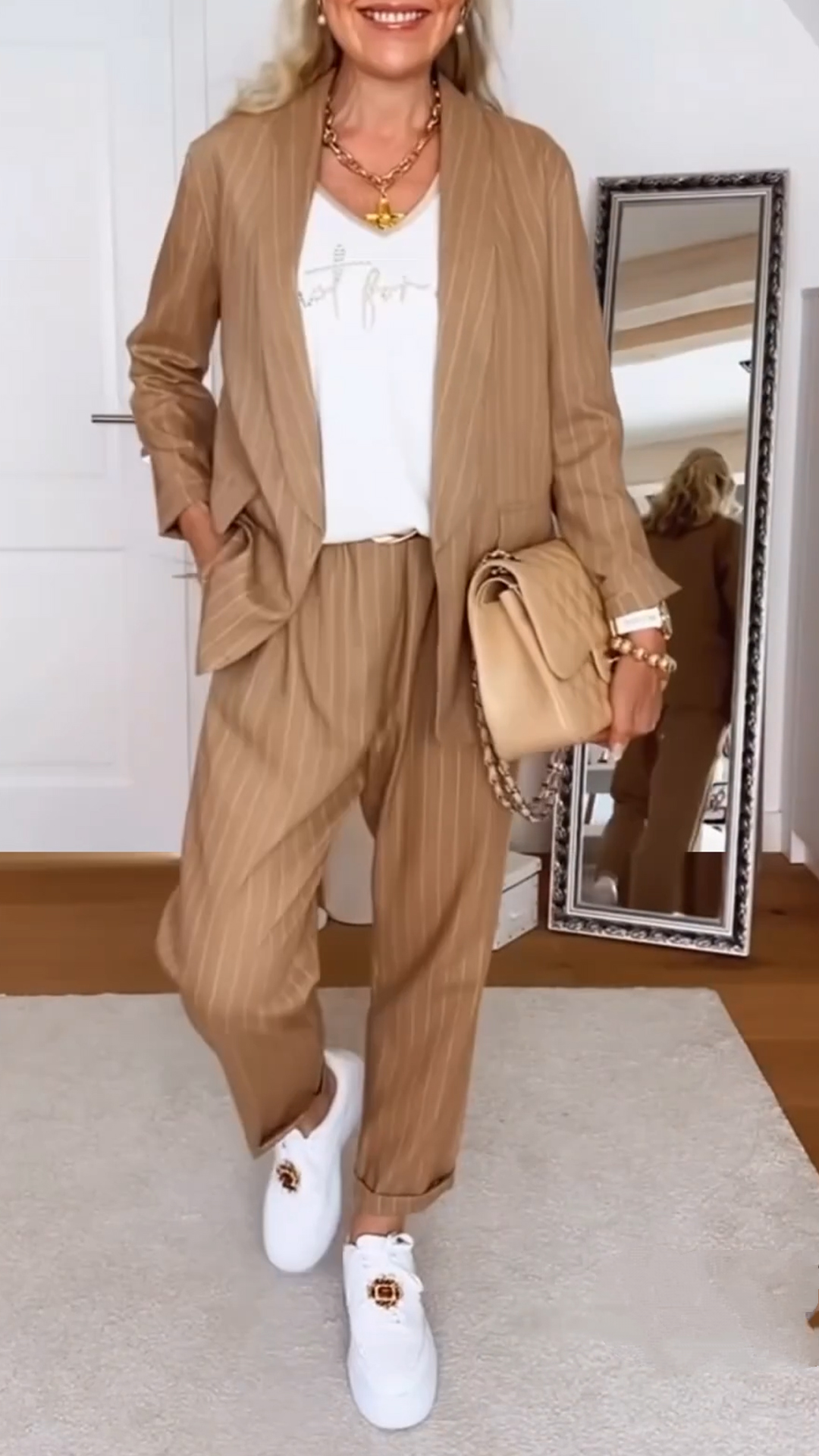 Women's Lapel Striped Casual Suit