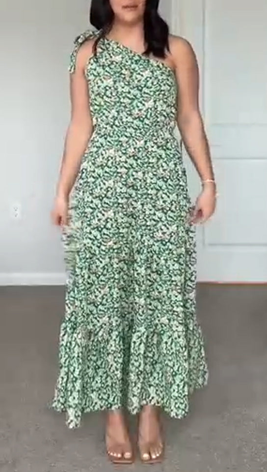 Women's One Shoulder Printed Casual Dress