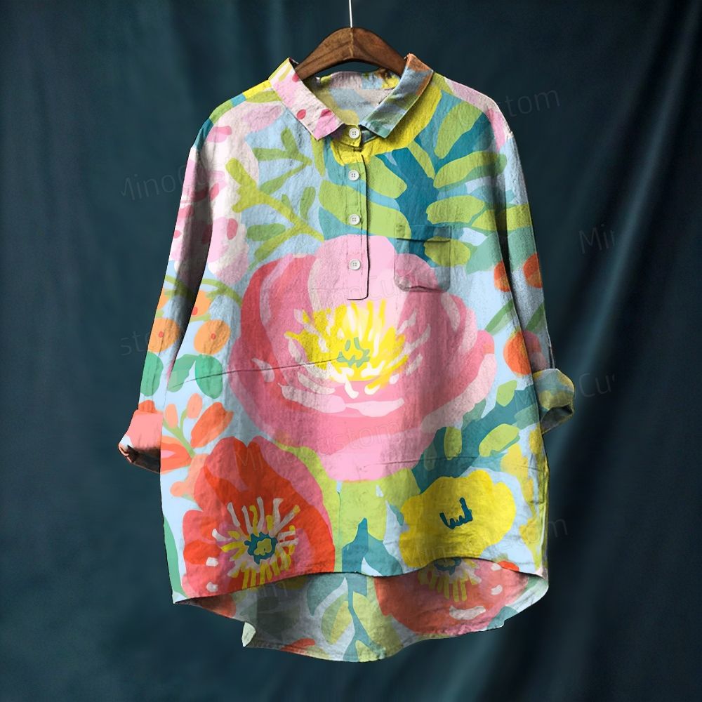 Vintage Women's Watercolor Floral Casual Long Sleeve Shirt