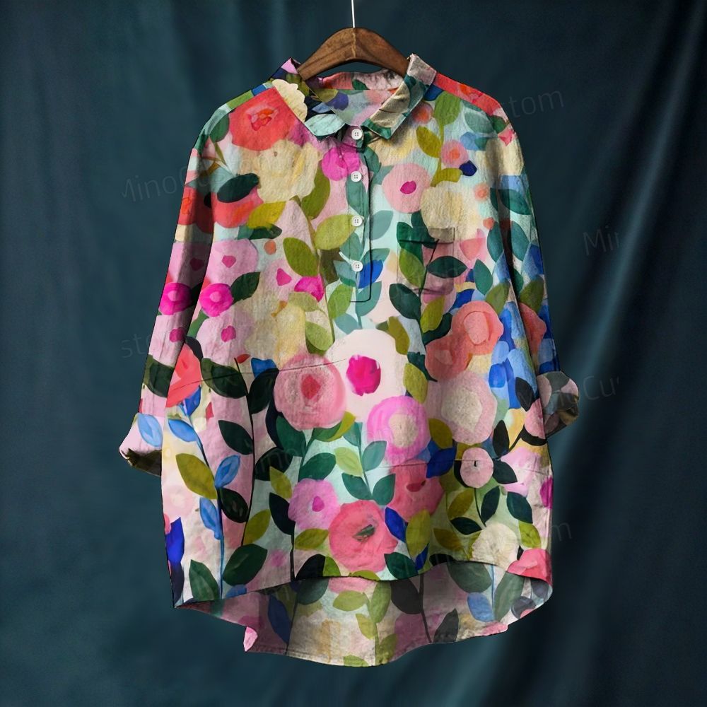 Vintage Women's Printed Casual Long Sleeve Shirt