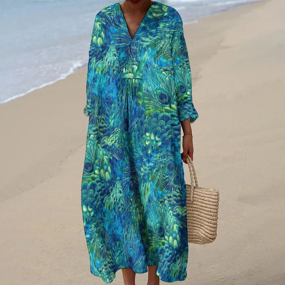 Women's Peacock Feather Print Maxi Dress